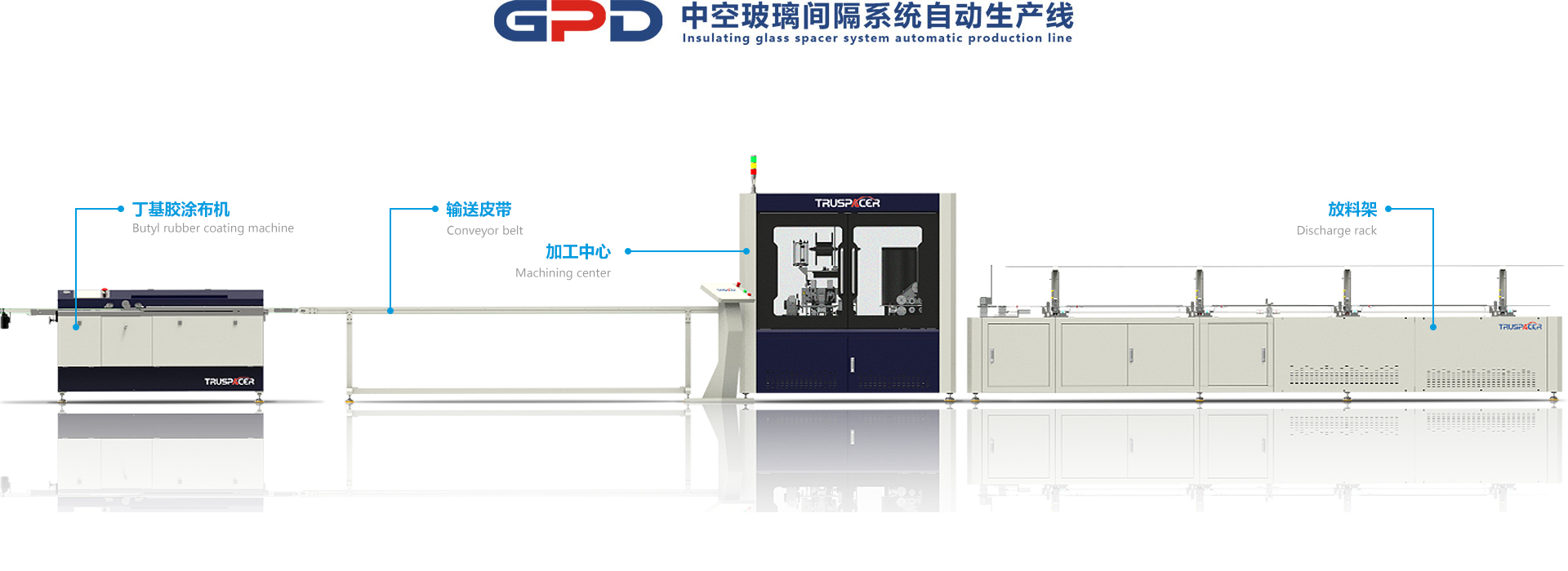 該生產(chǎn)線采用了創(chuàng)新的中空玻璃間隔條制造技術(shù)和工藝,主要由放料架、加工中心、輸送帶、丁基膠涂布機(jī)四部分組成??杉庸?span lang="EN-US">8A-24A鋁隔條,成框大小300-2000mm。自動上料、自動灌裝、自動打膠、實(shí)現(xiàn)了鋁隔條制框的全自動化生產(chǎn),是中空玻璃制框的又一新模式。
